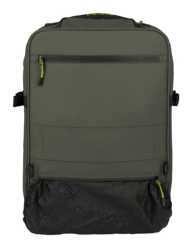 Chrbtový panel je opatrený priechodom, ktorý umožňuje batoh bezpečne nasadiť na rukoväť kufra, čo uľahčuje manipuláciu pri cestovaní s viacerými batožinami. Polyesterová podšívka dodáva batohu pevnosť a odolnosť.