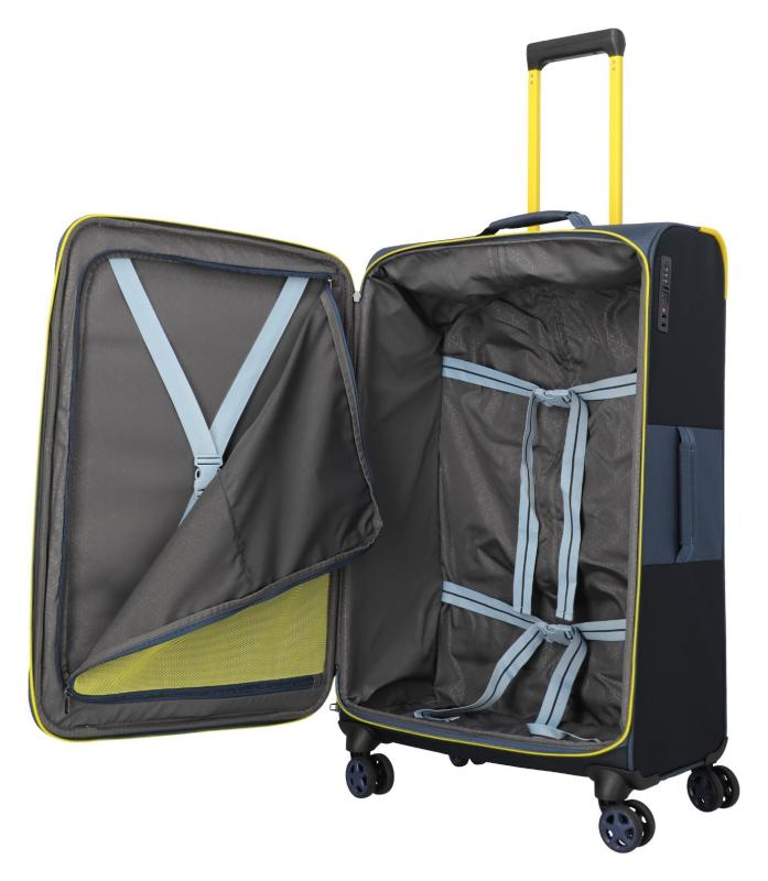 Velký látkový kufr s TSA zámkem, velkorysým úložným prostorem a zesílenými rohy.4 dvoukolečka otočná o 360°
