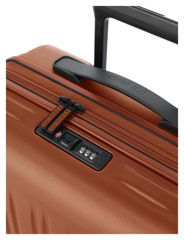 Lehká výsuvná rukojeť s aretací umožňuje pohodlné tažení kufru bez zbytečné námahy. Integrovaný TSA zámek zajišťuje bezpečnost zavazadla a umožňuje bezproblémovou kontrolu na letištích ve Velké Británii, USA a Kanadě. Kufr je vybaven expandérem, který umožňuje rychlé a snadné zvětšení objemu z 69 l na 79 l, což oceníte při balení na delší cesty.