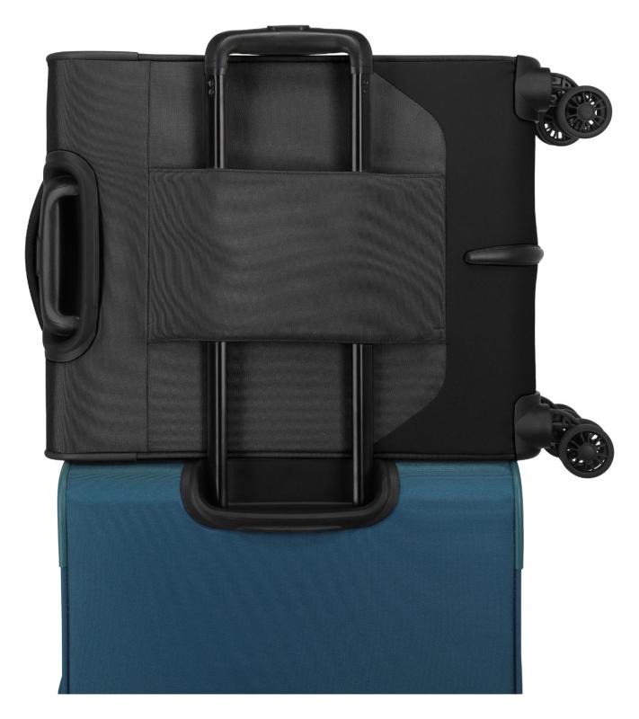 Spodná časť kufra je umývateľná, čo uľahčuje údržbu a predlžuje životnosť batožiny. Zadný popruh umožňuje navliecť kufor na rukoväť väčšej batožiny, čo oceníte pri kombinovanom cestovaní s viacerými kusmi batožiny.