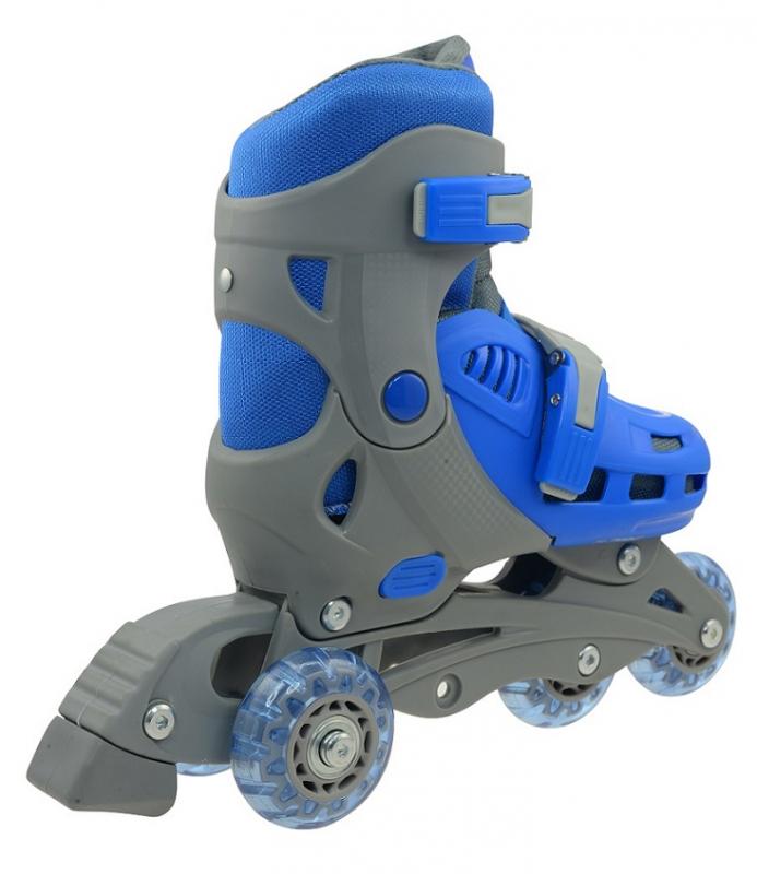 Nastaviteľné korčule s mäkkým vnútorným polstrovaním sú navrhnuté pre pohodlné korčuľovanie a vyrobené tak, aby spĺňali najmodernejšie bezpečnostné prvky. Vonkajšia topánka a podvozok sú vyrobené z kvalitných plastových materiálov, ktoré zaručujú nepremokavosť a zároveň dostatočné spevnenie členkov začínajúcich korčuliarov. Korčule sú ponúkané v dvoch farebných kombináciách.Kolesá: PVC 64x24mm