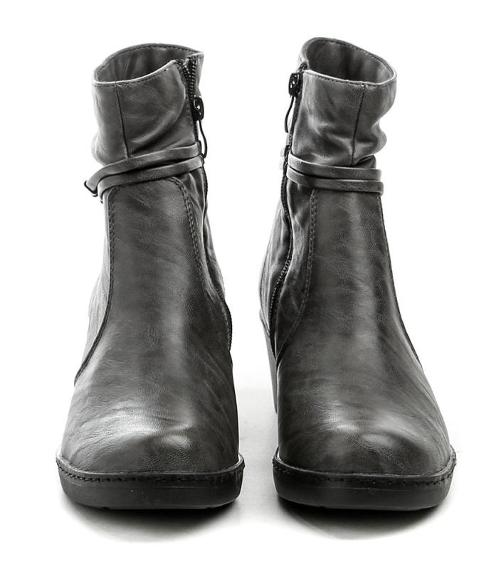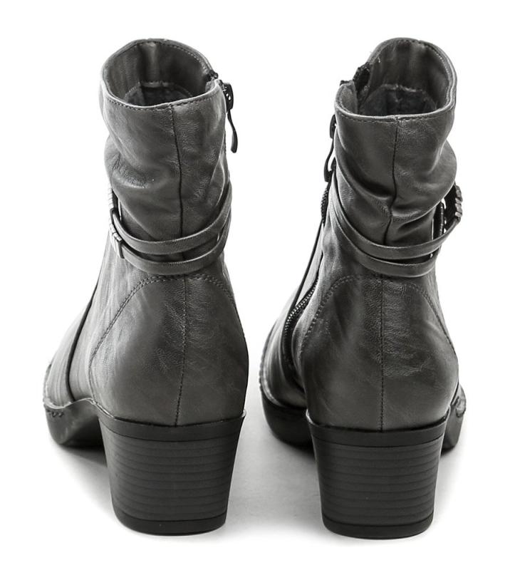 Zimné dámske topánky na opätku s praktickým zipsom a flaušovou podšívkou pre pohodlie a teplo počas chladných dní.Táto dámska zimná vychádzková obuv kombinuje pohodlie s elegantným vzhľadom vďaka podpätku vysokému 5 cm a praktickému zapínaniu na zips, ktoré uľahčuje obúvanie aj vyzúvanie.