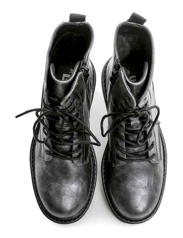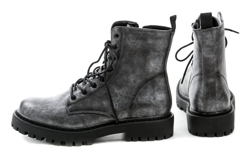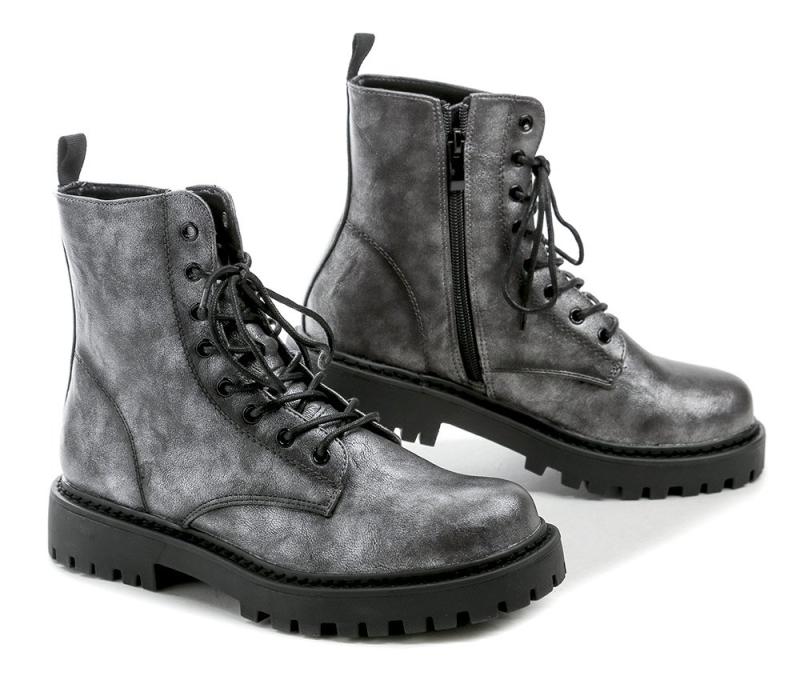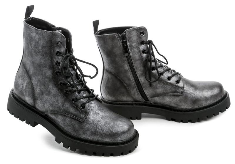 Dámské zimní boty s flaušovou podšívkou pro teplo a pohodlí, na šněrování i zip, z odolného syntetického materiálu ve šedo stříbrné barvě. zobrazit celý popis