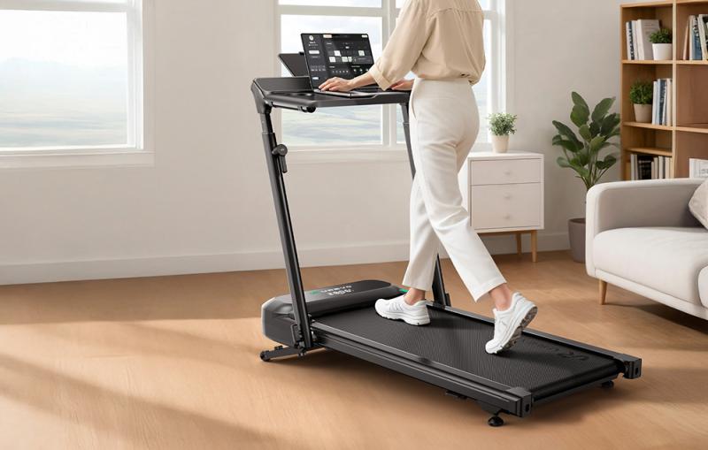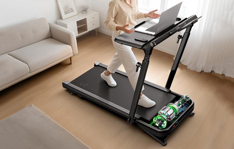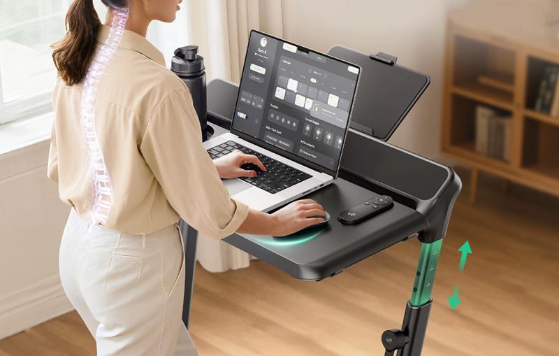 Vestavěný stojan s osmi nastaveními výšky je multifunkční, umožňuje umístit na něj notebook, telefon, šálek nebo poznámky, takže vše máte během chůze na dosah. Správné nastavení stojanu pomáhá udržet pohodlné držení těla a snižuje únavu.