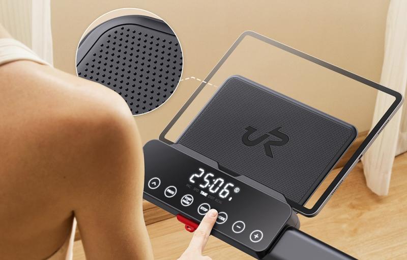 Ovládání je jednoduché a intuitivní díky dotykovému panelu i dálkovému ovládání, které umožňují měnit rychlost, sklon nebo programy bez přerušení tréninku. Vestavěná silikonová rukojeť slouží jako bezpečný držák pro tablet či smartphone, takže můžete sledovat trénink, videa nebo poslouchat hudbu.