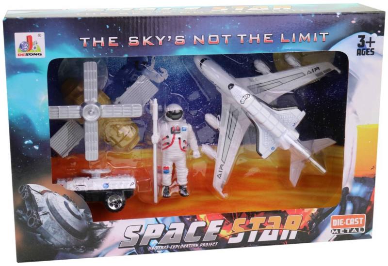 Obsah balení: postavička kosmonaut, družice, vozítko, letadlo, raketoplán