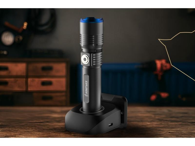 Výdrž baterky je přizpůsobena jednotlivým režimům, a to až 15 hodin na nízký režim, což oceníte při delších výletech nebo v nouzových situacích. Nabíjení je pohodlné a rychlé díky dokovací stanici s USB-C vstupem, která je součástí balení. Nemusíte tak kupovat klasické baterie, což je praktické a šetrné k životnímu prostředí.