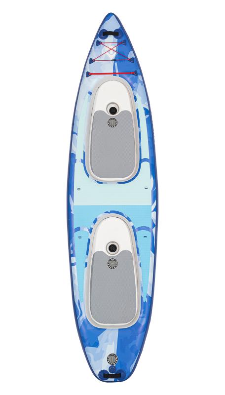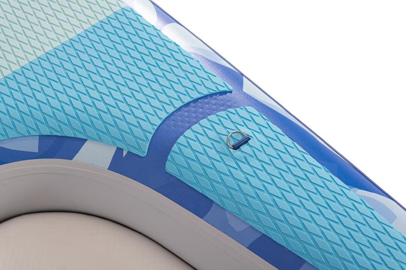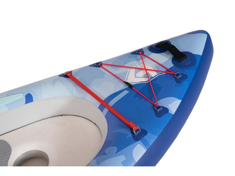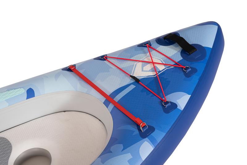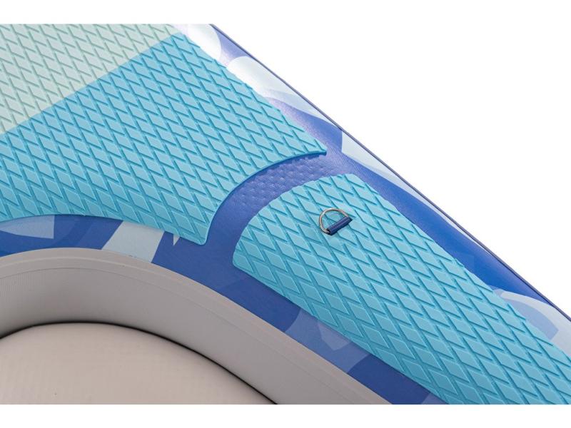 Nafukovací kajak nabízí pohodlné sezení pro dvě osoby a stabilní jízdu vhodnou pro začátečníky i pokročilé vodáky. Díky konstrukci s technologií DROP-STITCH o hmotnosti 2600 g/m2 je kajak pevný a odolný, přičemž spoje jsou vytvořeny metodou heat bonded, která používá teplo a tlak bez lepidel. Výsledkem je lehký a trvanlivý kajak, který zvládne dlouhodobé používání na vodě.