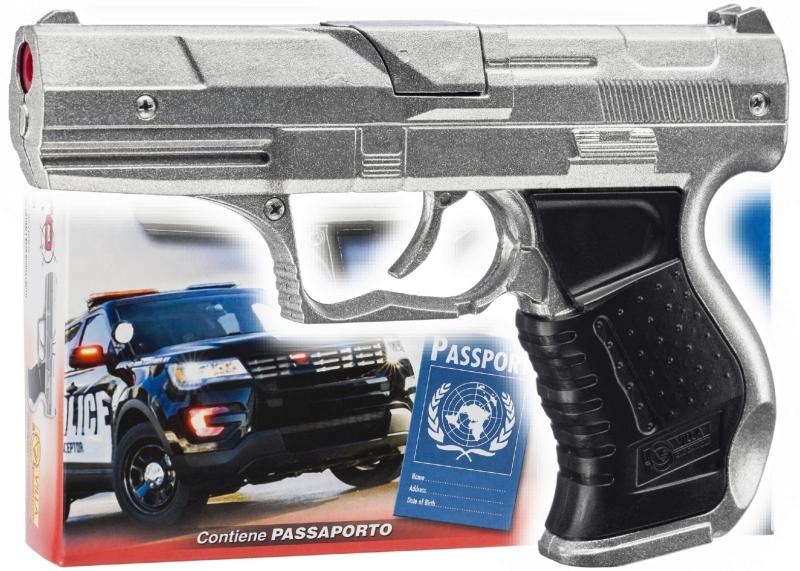 Jedná se o kovovou pistoli v černém provedení s kapacitou až 8 ran na kapslíky. Délka zbraně činí 21 cm, což z ní dělá dobře ovladatelnou hračku pro děti. Díky kvalitnímu kovovému provedení je pistole odolná a zároveň působí velmi realisticky, což ocení malé i větší děti při různých hrách a karnevalech.