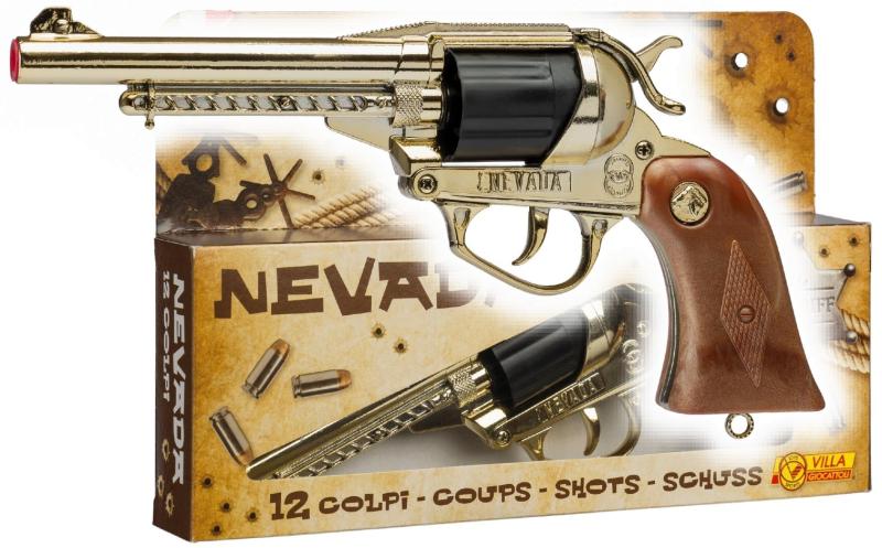 Kovbojská kapslíková pistole/kolt kovová,12 ran (pistole na kapslíky, na kapsle). Krásná propracovaná pistole/kolt Nevada kovová, patří mezi oblíbené dětské kapslíkové zbraně. S touto parádou budeš hvězdou každého karnevalu.