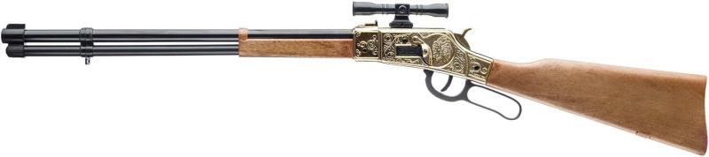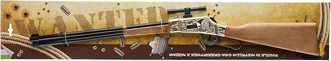 Krásná western puška pro kluky. Barva zlatá. Puška Comanche je perfektní hračka pro děti, které milují hraní rolí a venkovní dobrodružství. Autentický design: Puška Comanche 3140 se vyznačuje designem věrným skutečným puškám používaným na Divokém západě. Děti se budou cítit jako skuteční kovbojové. Když ji budou držet, ponoří se tak do westernových dobrodružství. Puška Comanche je vyrobena z vysoce kvalitních materiálů, je odolná a trvanlivá. Bez poškození vydrží i náročnou hru dětí. Kovbojská kapslíková puška 12 ran (kapslíky, kapsle). To dětem umožňuje simulovat přestřelky bez rizika zranění sebe, nebo ostatních. S délkou cca 78 cm je puška velikostí vhodnou pro starší děti. Snadno se s ní manipuluje a cílí, takže si děti mohou pohodlně hrát celé hodiny.