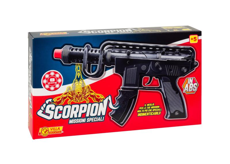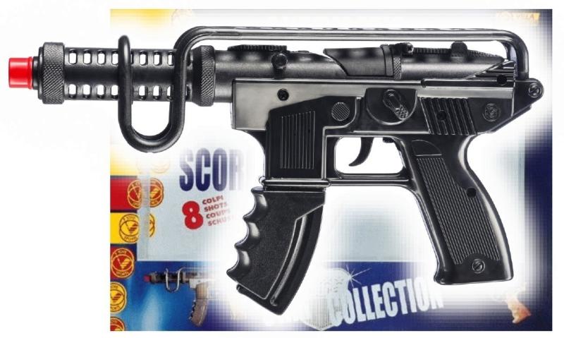 Funkční model policejního automatu Scorpion na 8 rané kapslíky. Samopal je v černém provedení. Samopal potěší každého chlapce, který má rád zbraně a hry na zloděje.Tento propracovaný samopal patří mezi oblíbené dětské kapslíkové zbraně.