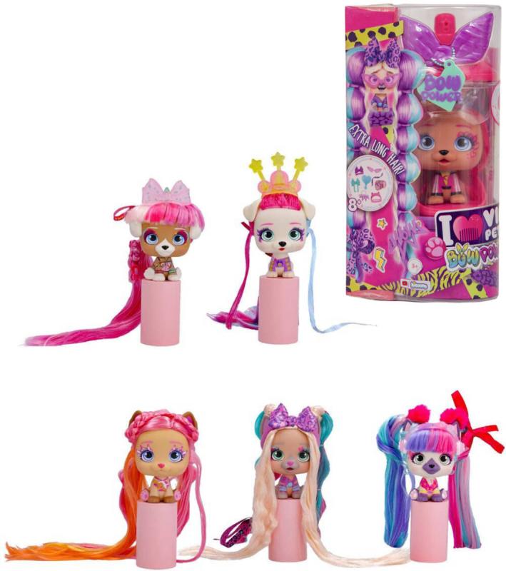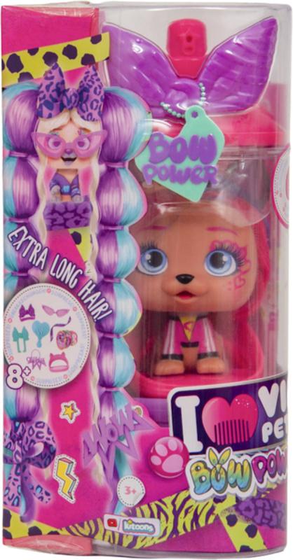 VIP Pets Bow Power je sada tematických figurek psů určená pro děti ve věku od 4 do 6 let, která nabízí zábavnou a kreativní hru s úpravou vlasů. V balení najdete jednoho ze šesti různých pejsků (Kim, Natty, Aurora, Shiara, Gwen a Juliet), každého s unikátní stuhou, která je charakteristickým doplňkem a odlišuje je od ostatních. Pejsci jsou barevně velmi pestrí, což přispívá k vizuální atraktivitě celé kolekce a umožňuje dětem rozvíjet fantazii při vytváření různých účesů.