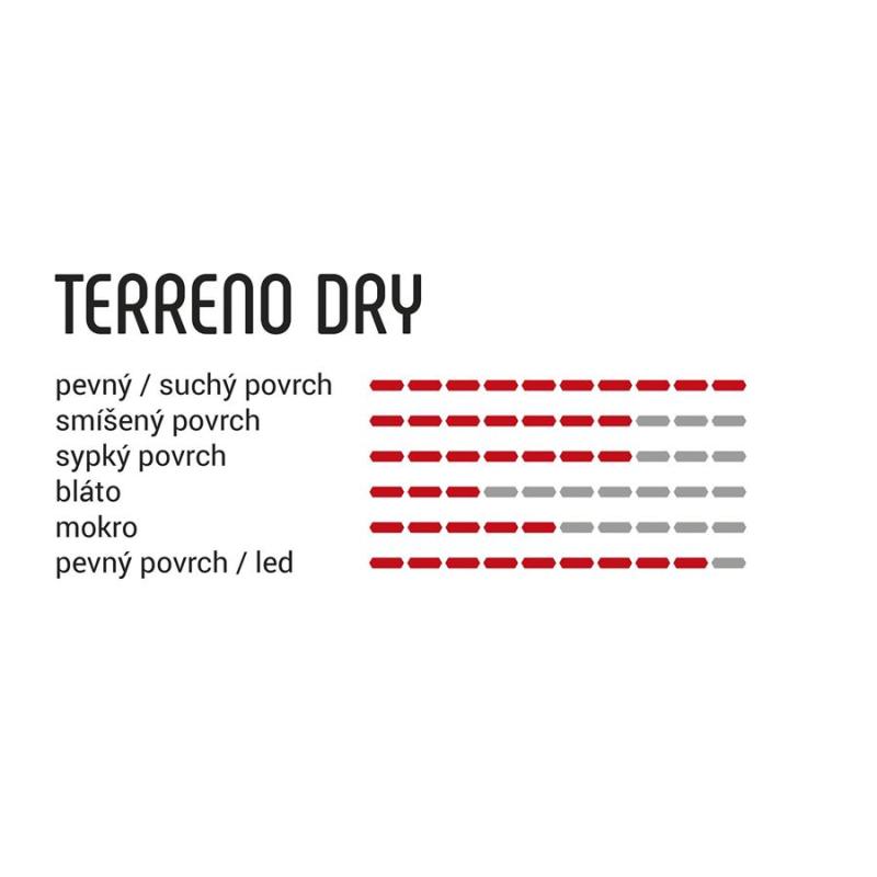 Jak už název napovídá, tento plášť je určen zejména pro sušší XC tratě. Unikátní středová část vzorku je inspirovaná kaprem - konkrétně jeho šupinami.