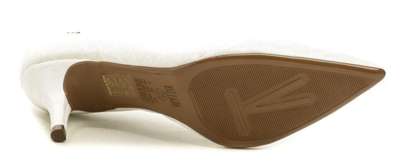 Dámska celoročná spoločenská svadobná aj vychádzková obuv typu lodičky na strednom tenkom podpätku.Obuv je vyrobená zo syntetického materiálu. Vnútorná časť je vybavená textilnou podšívkou a príjemne polstrovanou stielkou zo syntetickej kože.