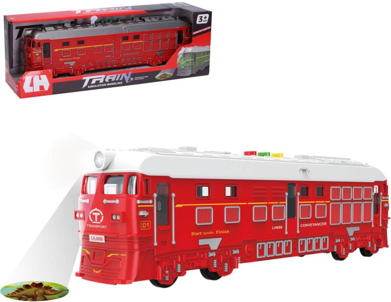 Vlak lokomotiva červená na setrvačník s projekcí na baterie Světlo Zvuk