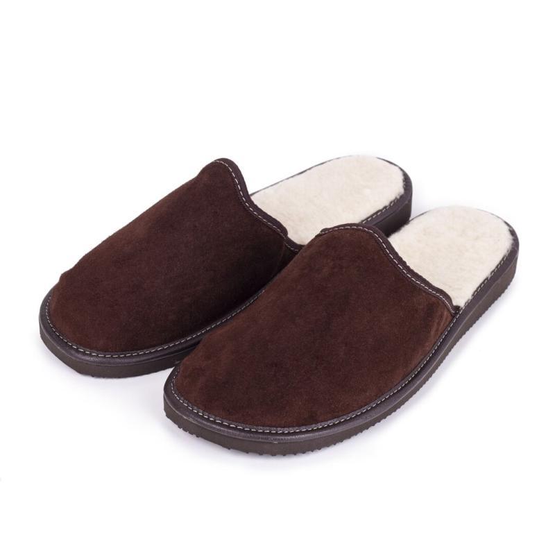 Vlnka pánské kožené pantofle s ovčí vlnou - tmavě hnědá POUZE EU 43 (VÝPRODEJ) | Net-market.cz