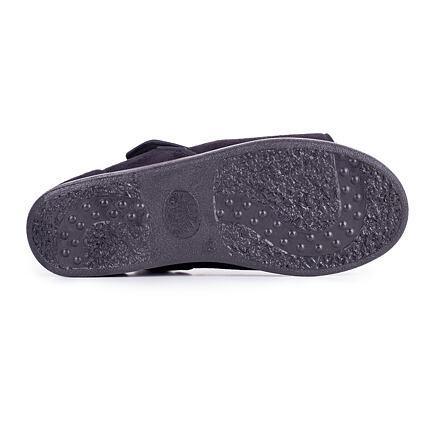 Tato obuv je vhodná pro ty, kteří hledají širší a pohodlnou obuv, trpí nejrůznějšími problémy s chodidly jako například diabetici a revmatici, ale také jako vhodná obuv pro zabandážované chodidla po operaci. Široké otevírání na dva suché zipy, vám umožní otevřít boty až ke špičce a pohodlně se obout.Na patě je také suchý zip k nastavení potřebné šířky paty. Tato obuv disponuje vyjímatelnou vložkou, kterou můžete nahradit speciální vložkou, kterou připravil váš ortoped, přesně podle vašeho chodidla. Vnější materiál obuvi je vyroben z prodyšného mikroveluru a vložka z gambrely. Tyto materiály umožňují obuv prát v pračce do 30°C.
