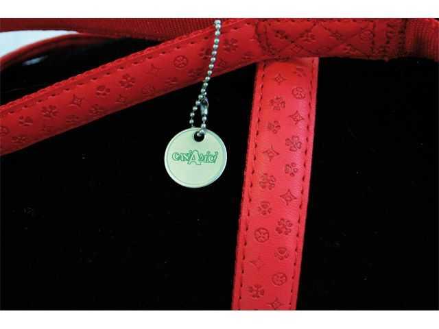 Kožené vodítko červené barvy s celopotiskem podšitý jemným nylonem ve stejné barvě• velice měkká příjemná imitace kůže