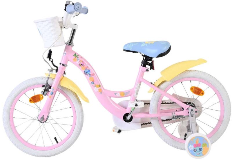 VOLARE Dětské kolo Stitch 16 růžové balanční kolečka s košíkem + doprava zdarma