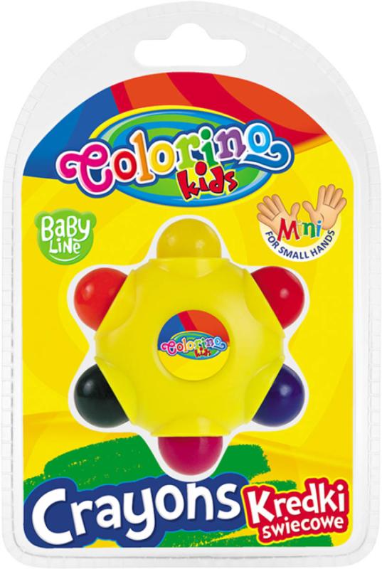 Dětské pastelky - voskovky Colorino 6in1 v držáku ve tvyru hvězdice, pro nejmenší děti. 6 barev.Hvězdicový tvar voskovky, který díky své ergonomii usnadňuje malování těm nejmenším dětským ručičkám. 6 barev. Ergonomický tvar nešpiní ruce.