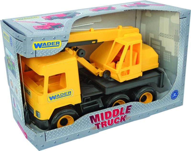 Wader Middle Truck auto jeřáb 38cm žluté plastové 32122