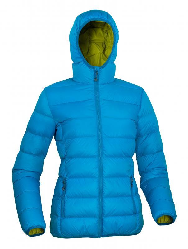 Warmpeace TACOMA LADY dámská péřová bunda POUZE M ocean/nugget gold - sv.modrá (VÝPRODEJ)