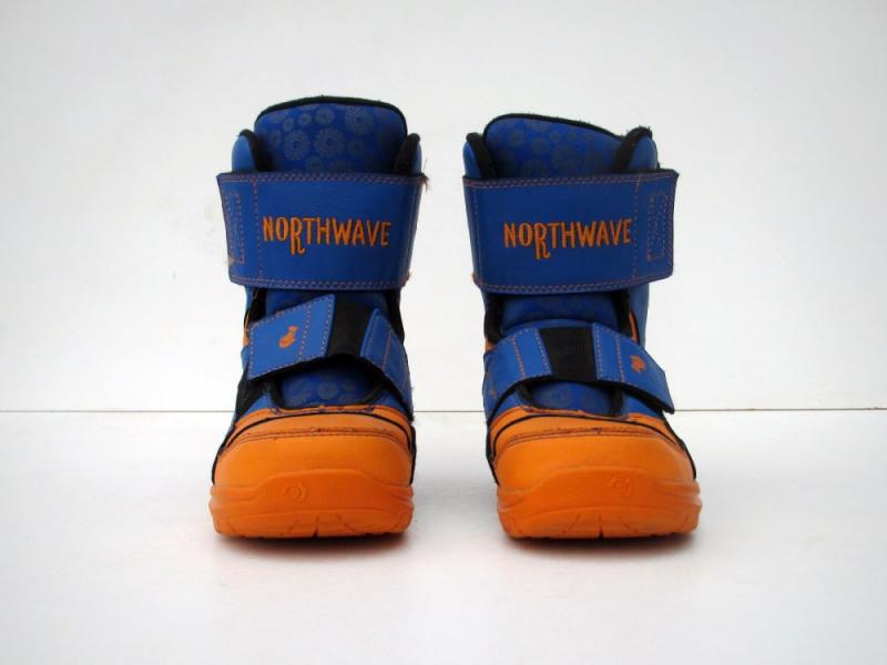 Tyto použité snowboardové boty značky Northwave mají délku vnitřní stélky 220 mm, což odpovídá menší velikosti vhodné pro uživatele s touto délkou nohy.