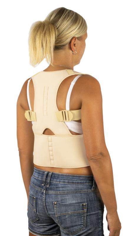 Ortéza na chrbát s magnetmi blahodarne pôsobí na hornú časť chrbta. Magnetická ortéza podporuje správne držanie tela, pomáha pri bolestiach, ktoré vznikajú nesprávnym držaním tela, ako je bolesť chrbta a krčnej chrbtice, zabraňuje hrbeniu sa. Magnety stimulujú krvný obeh a príjemne prehrievajú citlivú oblasť chrbtice. Zároveň ortéza chráni a spevňuje túto oblasť a uľavuje tak od nepríjemnej bolesti chrbta.