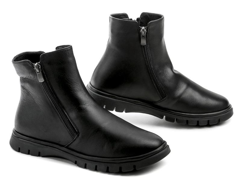 Dámske zimné topánky z pravej kože s jemným kožušíkom vo vnútri a praktickým zapínaním na dva zipsy pre ľahké obúvanie a pohodlie. zobraziť celý popis