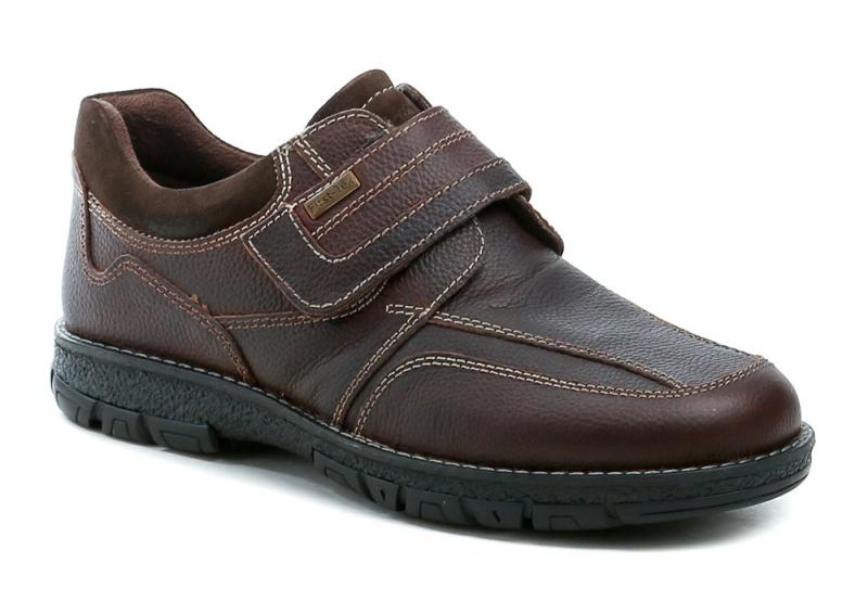 Pánské polobotky z pravé kůže s voděodolnou membránou First-TEX a zapínáním na suchý zip pro pohodlné celoroční nošení.Pánská celoroční vycházková obuv nabízí pohodlí a praktičnost díky zapínání na suchý zip, které usnadňuje obouvání a přizpůsobení boty noze.