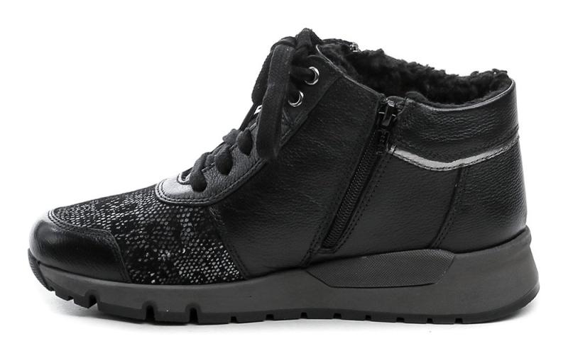 Dámské zimní boty z pravé kůže s teplým textilním kožíškem uvnitř, vybavené šněrováním a zipem pro snadné nazouvání. Zobrazit celý popis