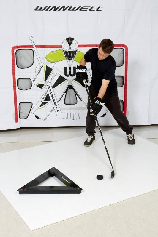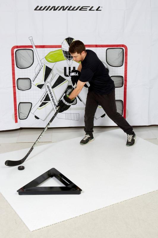 Trojúhelníkový nahrávač s těžkou ocelovou konstrukcí a gumovým odrážečem pro efektivní trénink rychlé střely a přesné práce s pukem. zobrazit celý popis