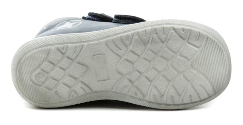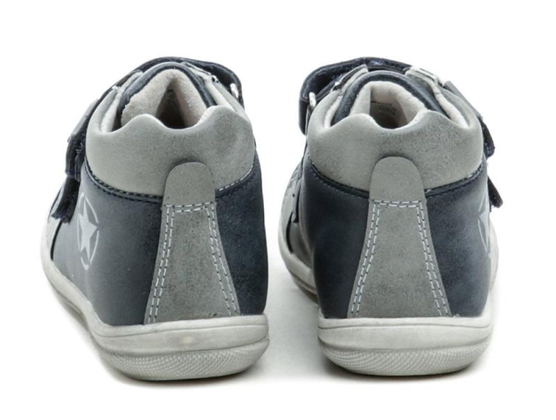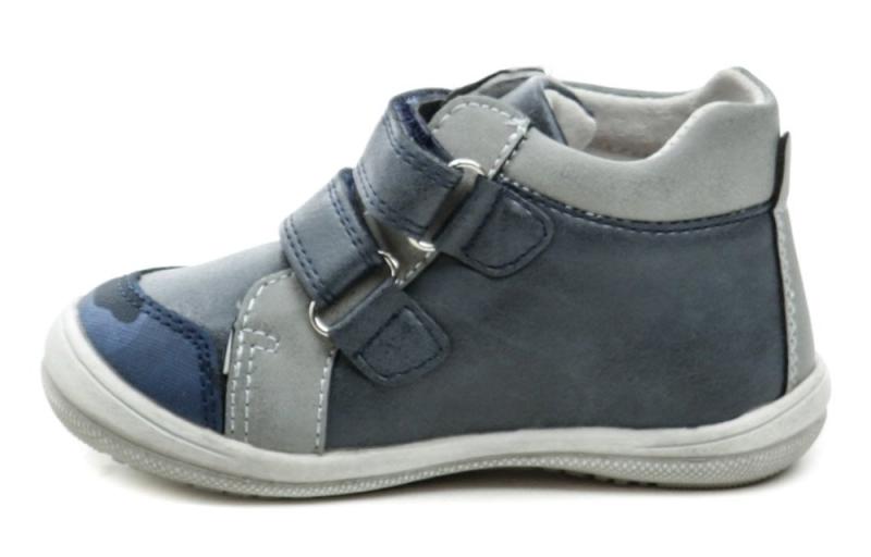 Dětská celoroční vycházková obuv se zapínáním na dva pásky se suchým zipem. Obuv je vyrobena ze syntetické kůže. Vnitřní část obuvi je kompletně vybavena podšívkou z pravé přírodní kůže. Stélka je rovněž z přírodní kůže vybavená podporou podélné klenby.