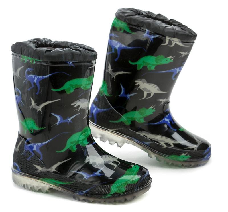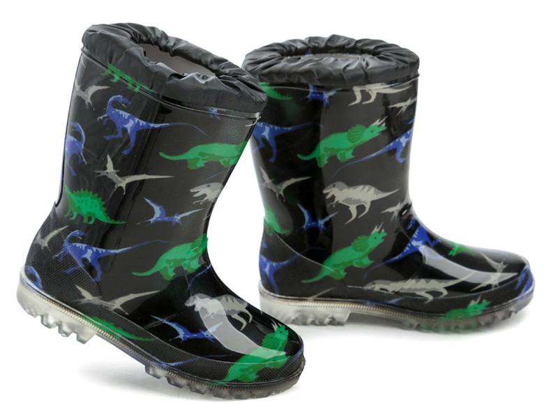 Wojtylko 5G5057C čierne detské gumáky dinosaurus