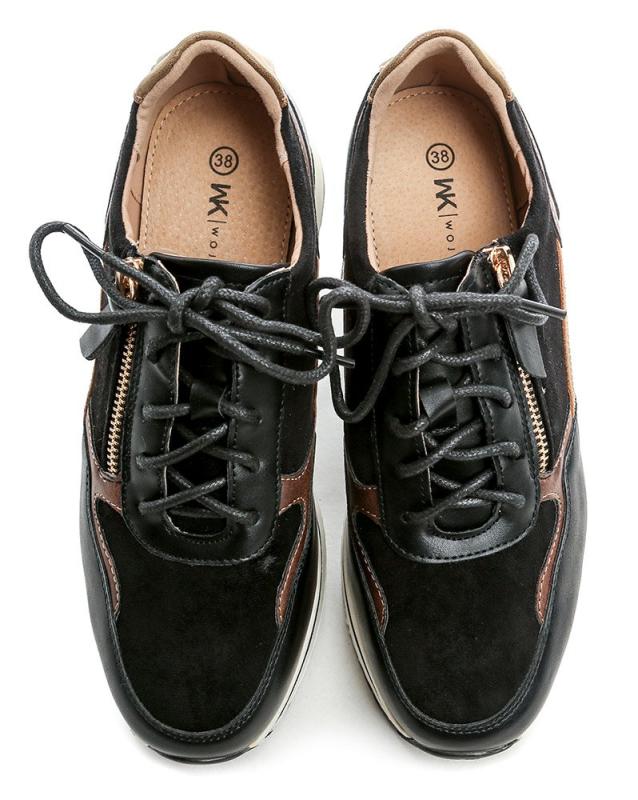 Celoročné dámske poltopánky s miernym klinom, kombinujúce šnurovanie a zips pre pohodlné obúvanie a bezpečné držanie nohy.