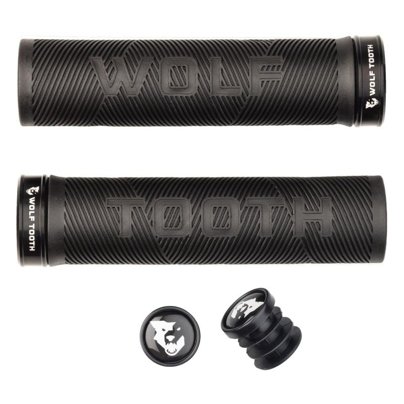 Gripy Wolf Tooth Echo Lock-On Grips jsou vyrobeny pro horskou cyklistiku napříč disciplínami. Gumový materiál je měkký a lepkavý na dotek, zatímco střídavý diagonální vzor rukojeti udržuje ruku jezdce na místě s rukavicemi i bez nich za jakýchkoli podmínek. Gripy jsou vyrobeny z černé lisované pryže a dodávají se s eloxovanými hliníkovými koncovkami, které odpovídají osmi základním barvám ostatních eloxovaných komponentů a doplňků Wolf Tooth. Obsahuje plastové koncové zátky Wolf Tooth.