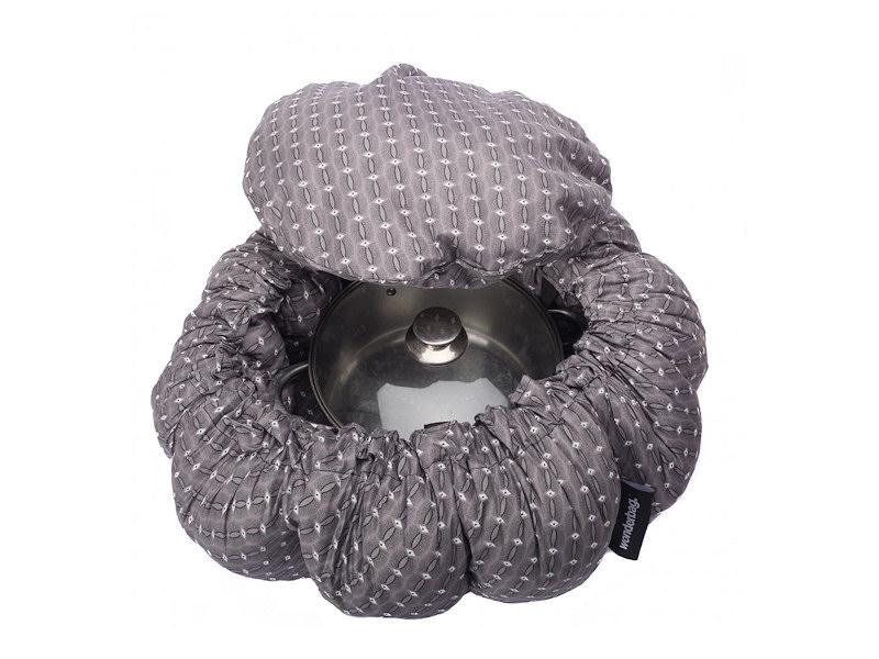 wonderbag. využívá technologii zadržování tepla, která umožňuje pomalé vaření jídla po vyjmutí ze zdroje tepla.