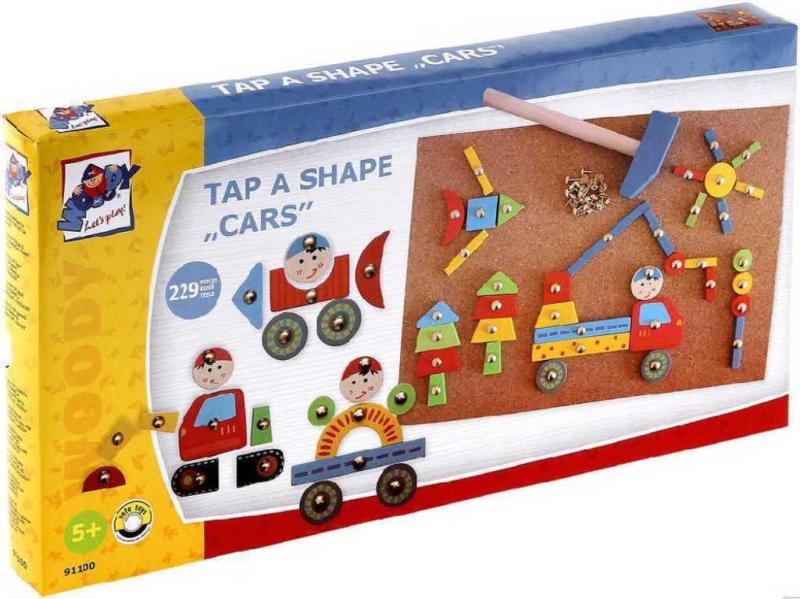 91100 Dětská stavebnice s přibíjejícími tvary a motivem aut a jiných dopravních prostředků Woody 229 dílůDěti dovedou z této dětské stavebnice vytvořit nekonečné množství obrázků plných fantazie a neskutečných tvarů. Práce se stavebnicí podporuje představivost, soustředěnost a přesnou koordinace pohybů.