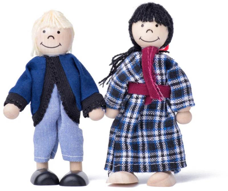 Woody DŘEVO Domeček malý se 2 panenkami a doplňky (dřevěná hračka)
