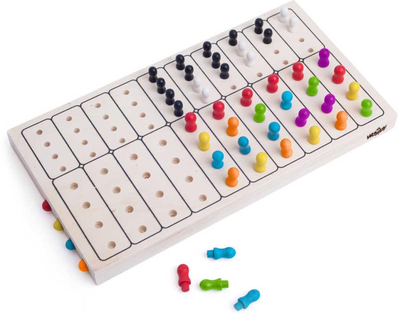 Klasická hra Logik v pěkném dřevěném provedení, pro všechny bystré hlavičky. Hra na procvičení logiky a kombinatoriky. Princip hry: na začátku hry první hráč tajně umístí libovolnou kombinaci čtyř barevných kolíčků do skryté části pod hrací desku. Druhý hráč se tuto kombinaci snaží uhodnout tím, že vytváří