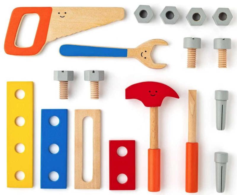 vyrobeny z kvalitního dřeva, díky tomu jsou pro děti bezpečné a vydrží i tvrdší nárazy. Malí kutilové při hře rozvíjí své technické myšlení a jemnou motoriku.