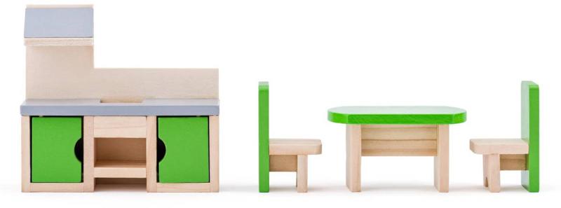 Woody DŘEVO Vila Isabelle set s nábytkem a 2 panenkami (dřevěná hračka)