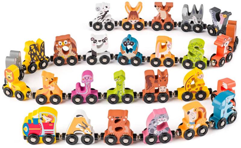 Woody DŘEVO Vláček zvířátka s abecedou AJ (dřevěná hračka)