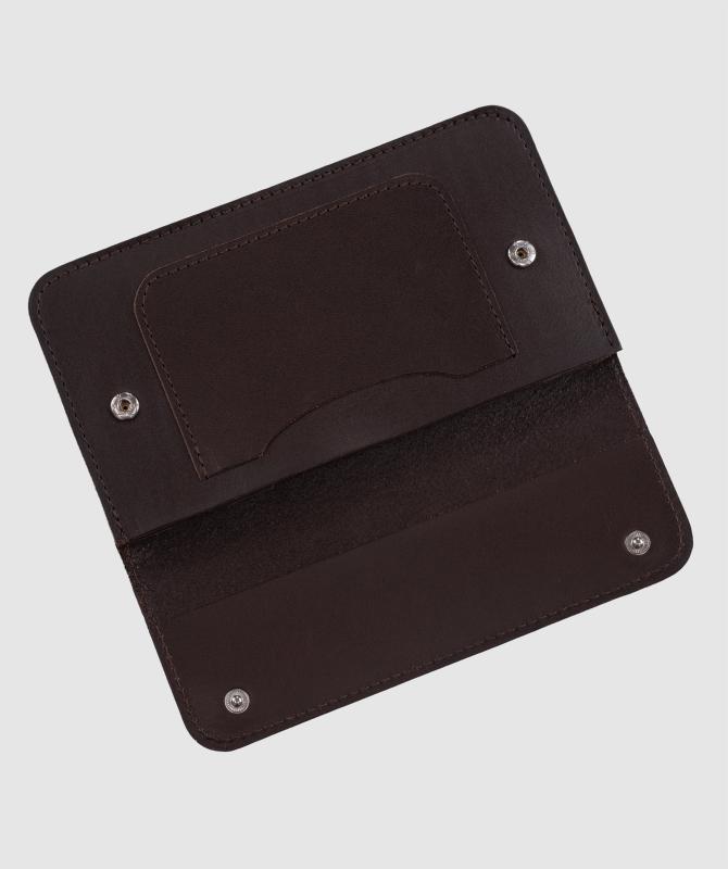 1,5 mm hovězí kůže, 200 x 105 mm, zavírání na dva cvoky, 1 slot na platební karty, 2 kapsy na bankovky, účtenky, starou občanku. Nedoporučujeme kontakt s vodou. Vyrobeno ve wooxusní jesenické rukodělné kožedílně.