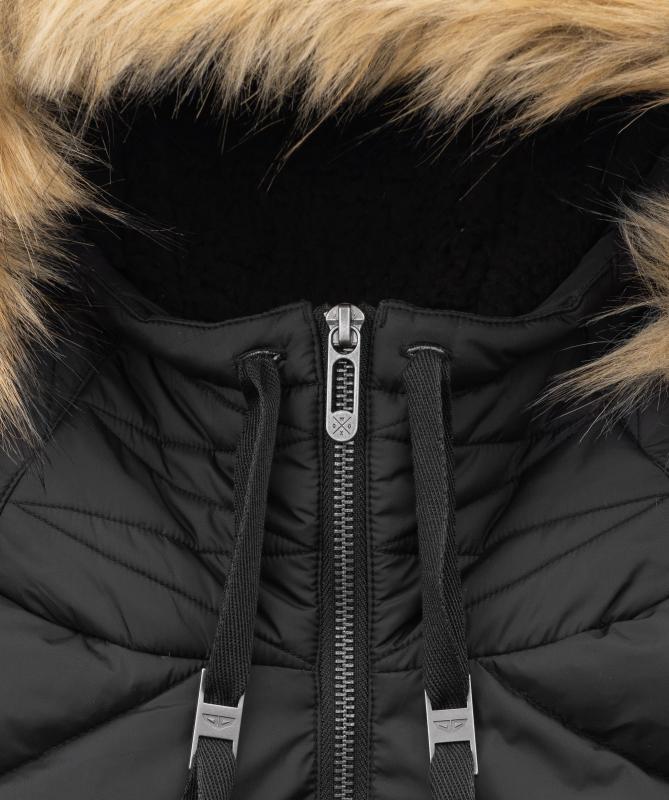 - odnímateľný umelý kožušinový lem a nastaviteľná kapucňa
