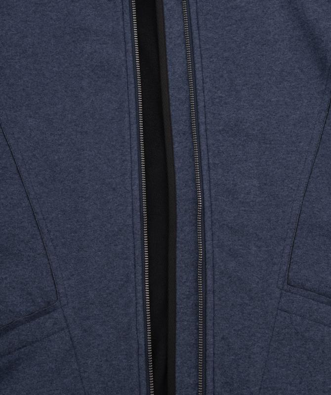 50% recyklovaný polyester, 50% polyester, třívrstvý, pružný materiál s membránou a vnitřním fleecem, vodní sloupec 10 000mm, paropropustnost 5 000g/m2/24h, ocelový hlavní zip