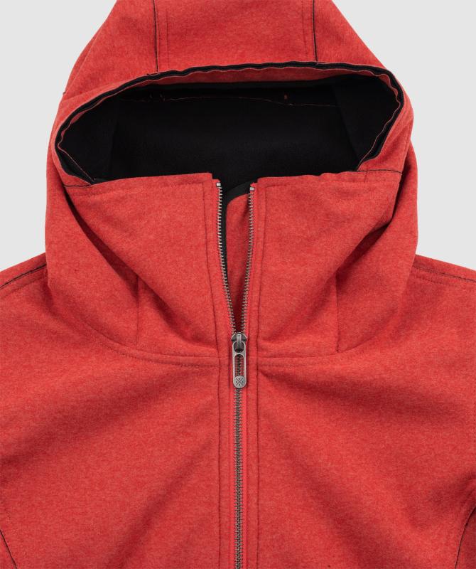 50% recyklovaný polyester, 50% polyester, třívrstvý, pružný materiál s membránou a vnitřním fleecem, vodní sloupec 10 000mm, paropropustnost 5 000g/m2/24h, ocelový hlavní zip