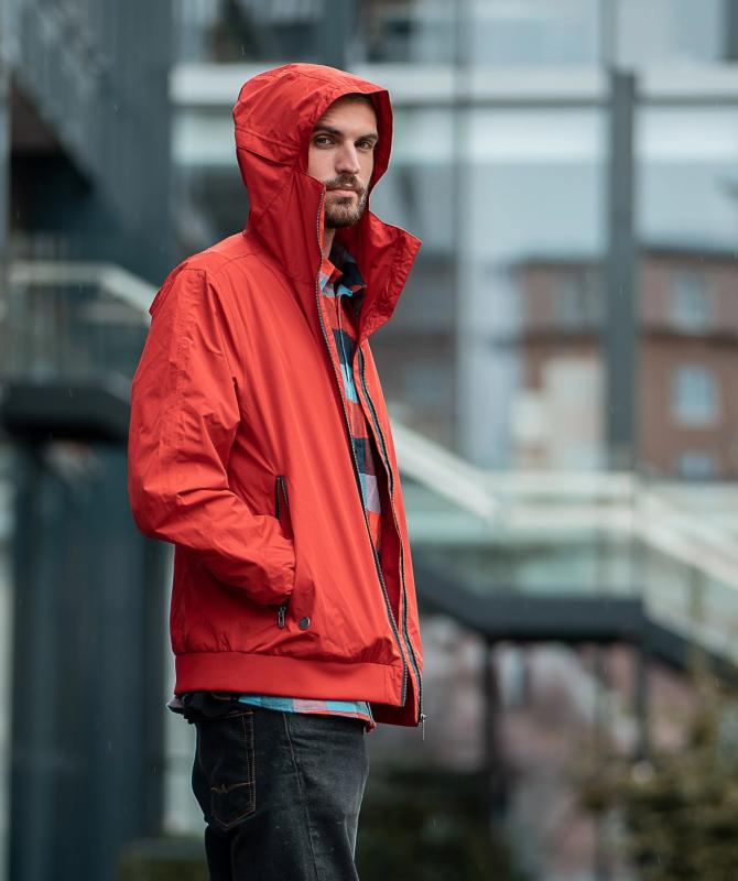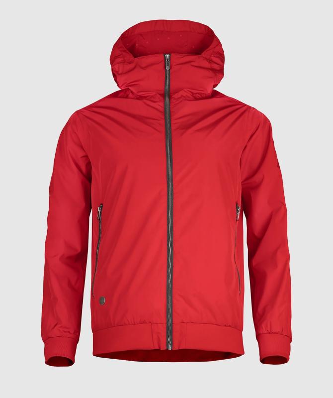Bunda sportovního vzhledu, 100% recyklovaný polyester, voděodolnost 8000mm, paropropustnost 3000g/m2/24h, voděodpudivá povrchová úprava - DWR PFCfree, hlavní kovový zip, dvě hlavní kapsy uzaviratelné na kovové zipy, rukávy a spodní okraj jsou ukončeny pružným nápletem, vnitřní prostorná kapsa na zip, podlepené švy, pružná wooxusní podšívka, nastavitelná kapuce, funkční ventilace na zadním dílu.