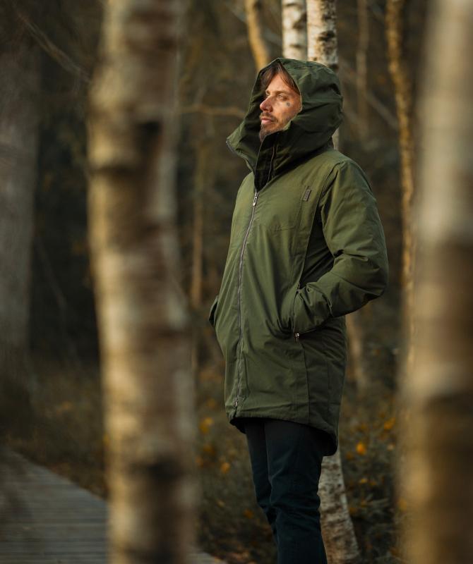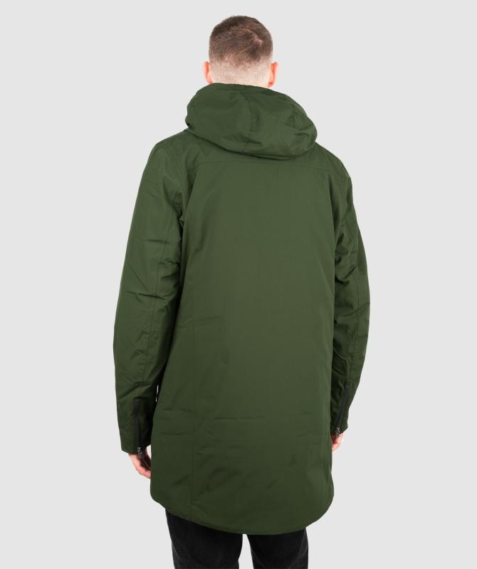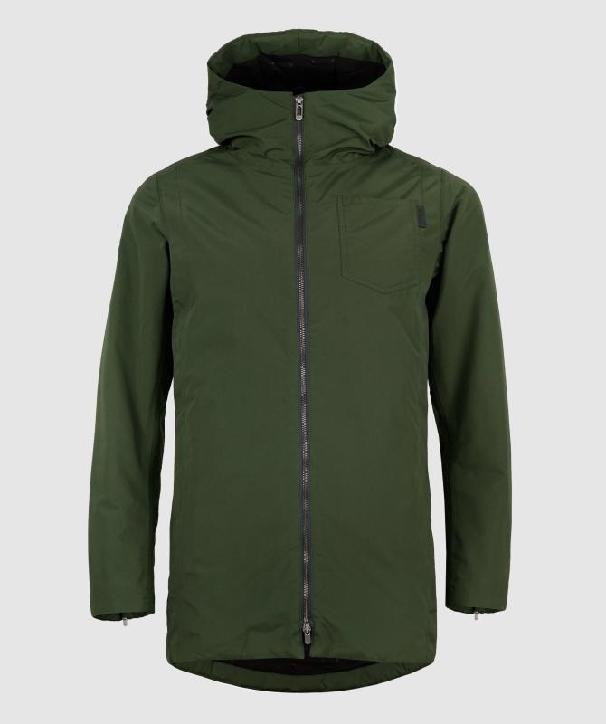 Funkční materiál z recyklovaného 100% polyesteru, voděodolnost 8000mm, paropropustnost 3000g/m2/24h, voděodpudivá povrchová úprava - DWR PFCfree, bunda je zateplená výplní Dupont Sorona 120g tělo, 80g rukávy, wooxusní strečová podšívka z recyklovaného polyesteru, hlavní ocelový dvoucestný zip, dvě hlavní kapsy zapínané na zip se dvěma protichůdými jezdci, vnější našitá náprsní kapsa, vnitřní uzaviratelná kapsa na zip, nastavitelná kapuce, nastavitelný spodní lem rukávů pomocí zipu, tvarovaný spodní okraj, podlepené švy na ramenou a rukávech pro vyšší funkčnost.